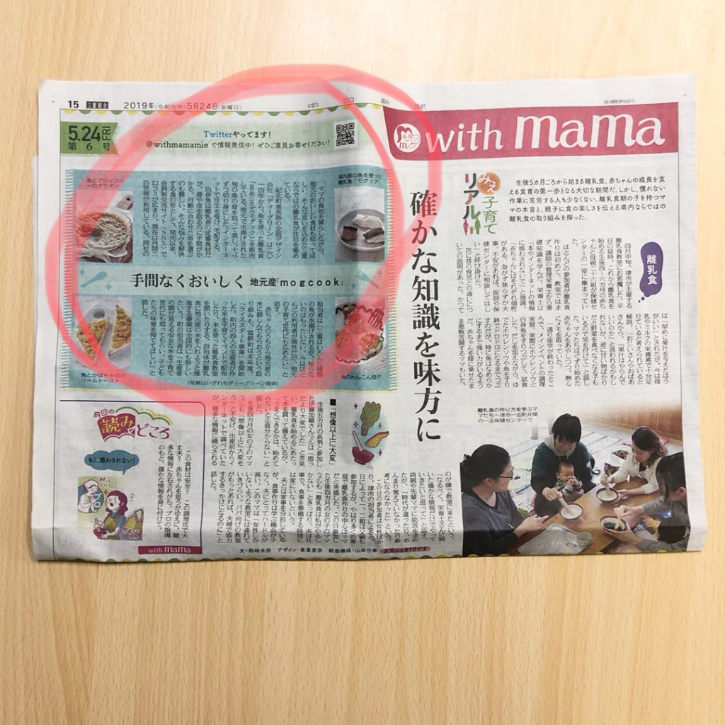 5月24日付中日新聞三重版「with mama」コーナーでmogcookのサービスが紹介されました。