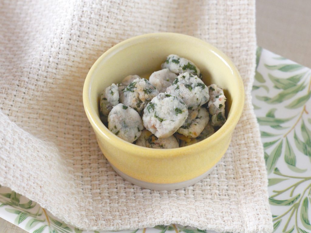 春菊は離乳食では中々使用頻度が低くなりやすい野菜だと思いますが、鉄分を多く含み、カロテンやビタミンB群、C等豊富に含まれています。